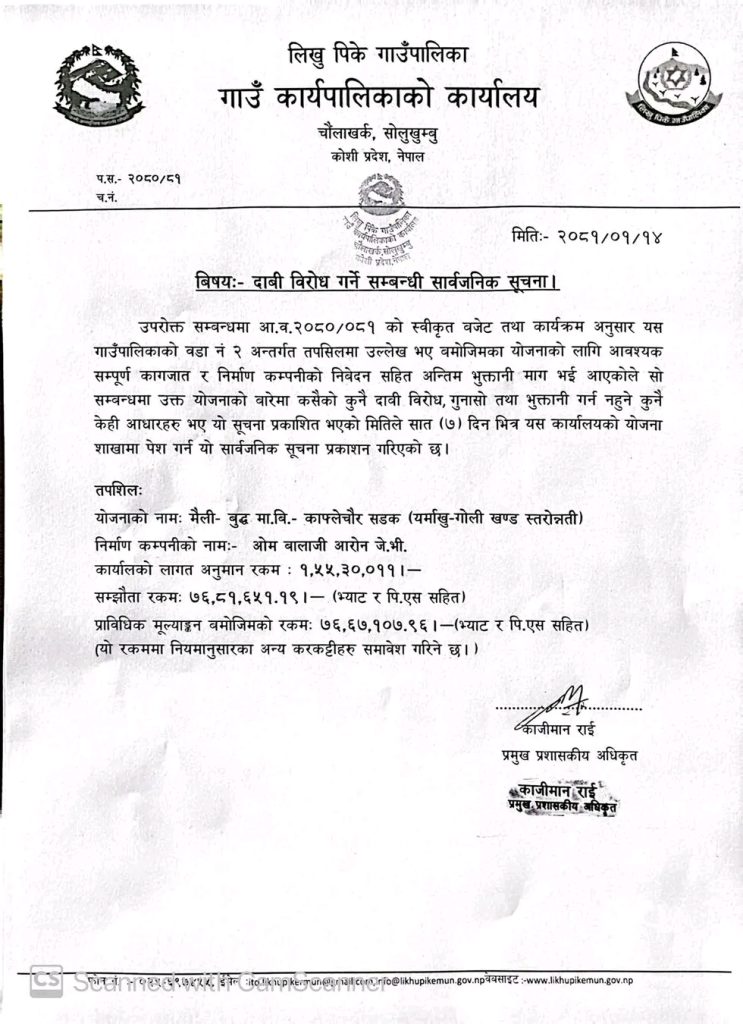 दावी विरोध गर्ने सम्बन्धी सार्वजनिक सूचना!!! दाक्सु मिडिया | २०८१ बैशाख १४ थप समाचारहरु सेवा करारमा लिने सम्बन्धी सूचना!!! सूचना !!अ.न.मि (चौथौ तह ) सेवा करारमा कर्मचारी पदपूर्ति गर्ने सम्बन्धि दोस्रो पटक प्रकाशित सूचना!!मिति:२०८०/१२/१६ कृषि चुन वितरण सम्बन्धी सूचना।।। भुमि व्यवस्थापन सम्बन्धी सूचना !!! कृषकहरुबाट चियाको विरुवाको माग संकलन सम्बन्धी सूचना । गाउँ सभाको १३ औं अधिवेशन (विशेष) आव्हान सम्बन्धी सूचना । तपाईको प्रतिक्रिया दिनुहोस् Leave a Reply Cancel replyYour email address will not be published. Required fields are marked * Your Comment* Name* Email* Website Notify me of follow-up comments by email. Notify me of new posts by email. Δ