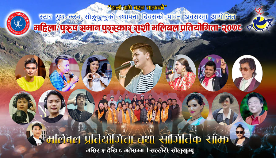 क्लबले आफ्नो स्थापना दिवसको अवसरमा यही मंसिर ५ गते देखि ८ गतेसम्म जिल्ला समन्वय समिति, सोलुखुम्बुको प्राङ्गण, सल्लेरीमा महिला तथा पुरुष भलिबल प्रतियोगीताको आयोजना गर्न लागेको हो ।