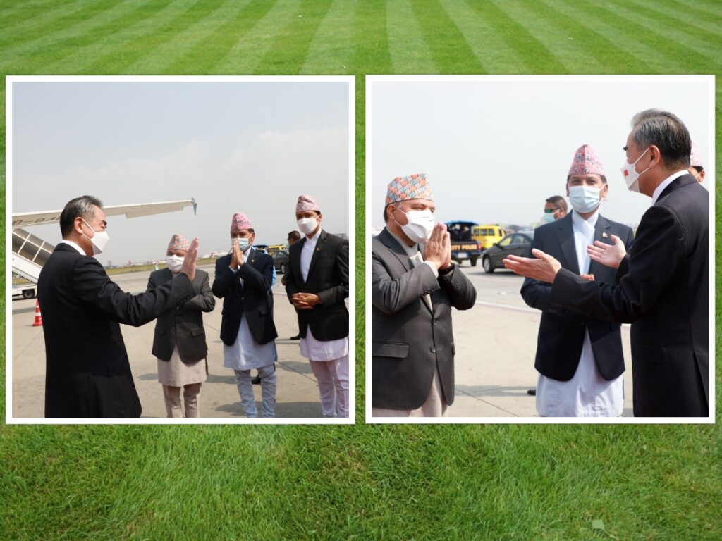 परराष्ट्रमन्त्री डा नारायण खड्काको मैत्रीपूर्ण निमन्त्रणामा नेपाल भ्रमणमा आउनुभएका विदेशमन्त्री वाङ १९ सदस्यीय प्रतिनिधिमण्डलको नेतृत्व गर्दै शुक्रबार यहाँ आइपुग्नुभएको थियो ।