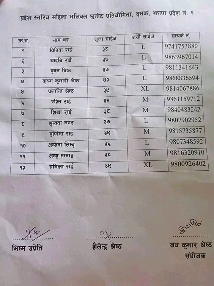 सोलुखुम्बु जिल्लाका चादनी राई प्रदेश एक बाट नवौं राष्ट्रिय भलिबल प्रतियोगिताको लागि छनौट